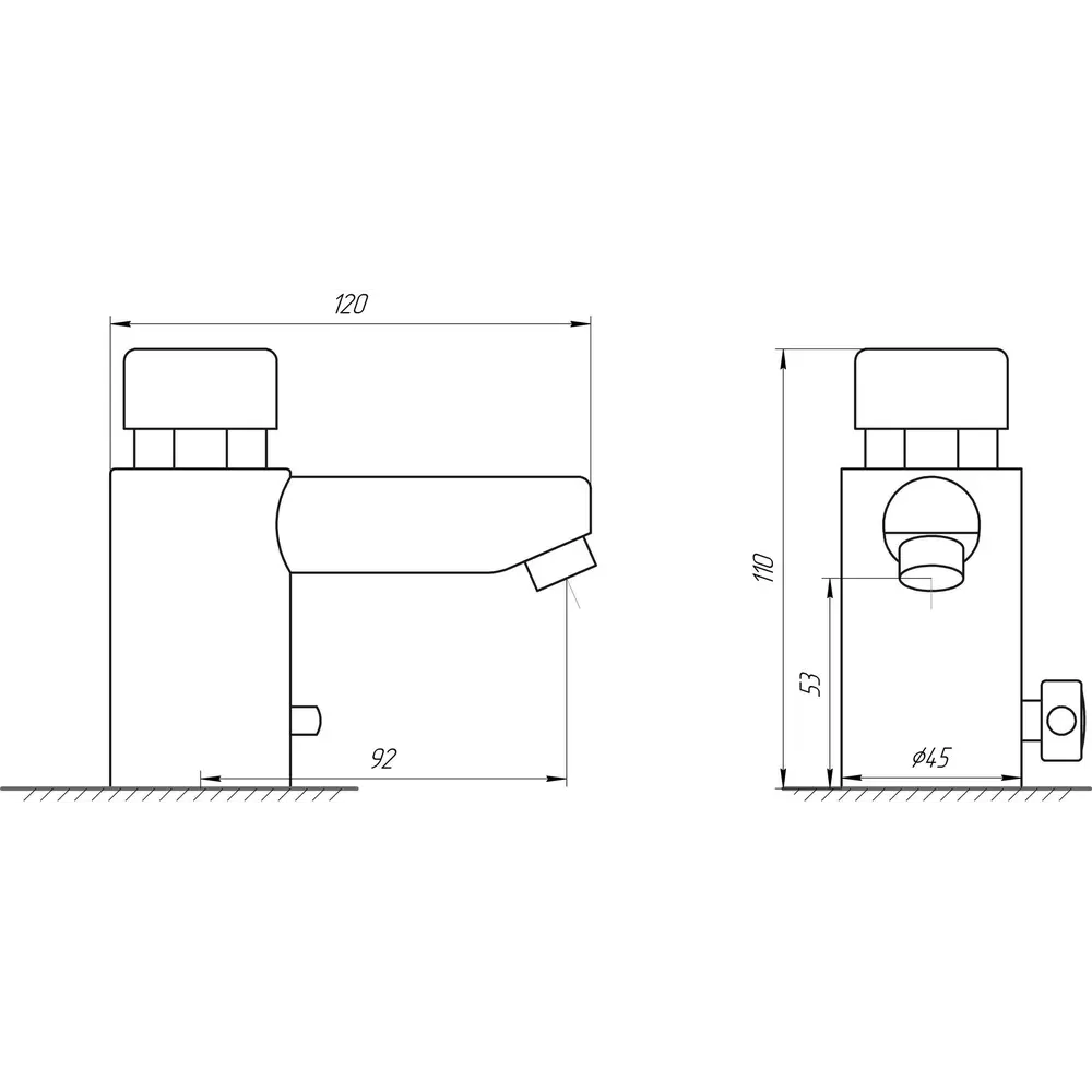 Длина излива - 92 мм