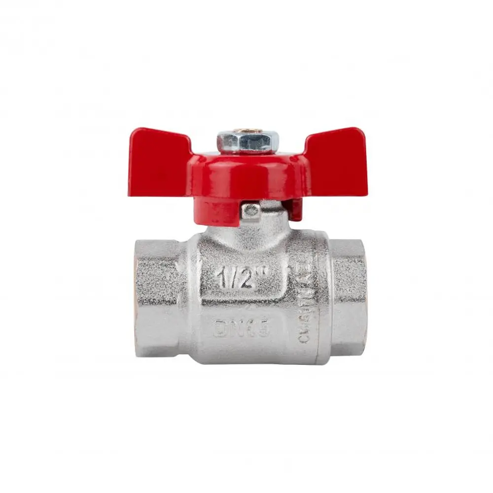 Повнопрохідний кульовий кран ICMA 1/2" з червоним метеликом, внутрішньою/внутрішньою різьбленням, противибуховим штоком з подвійним гумовим кільцем. Сфера застосування: системи опалення/охолодження. Максимальна робоча температура - 150 °C. Корпус вироби виготовляється з матеріалу високої якості - латунь CW617N - UNIN EN 12165.
