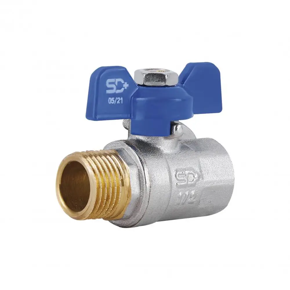 Полудюймовий прямий кран кульовий SD Plus 1/2" ВЗ для води (метелик) SD607W15 з одного боку забезпечений внутрішньою різьбою, а з іншого — зовнішньою. Латунний виріб буде служити надійно, затвор-куля забезпечує високу герметичність. Сфера застосування такої запірної арматури — системи холодного і гарячого водопостачання, опалення (max. робоча температура — 120 °С). Ручка-метелик дозволяє розмістити такий кран там, де недостатньо місця для повороту важеля.