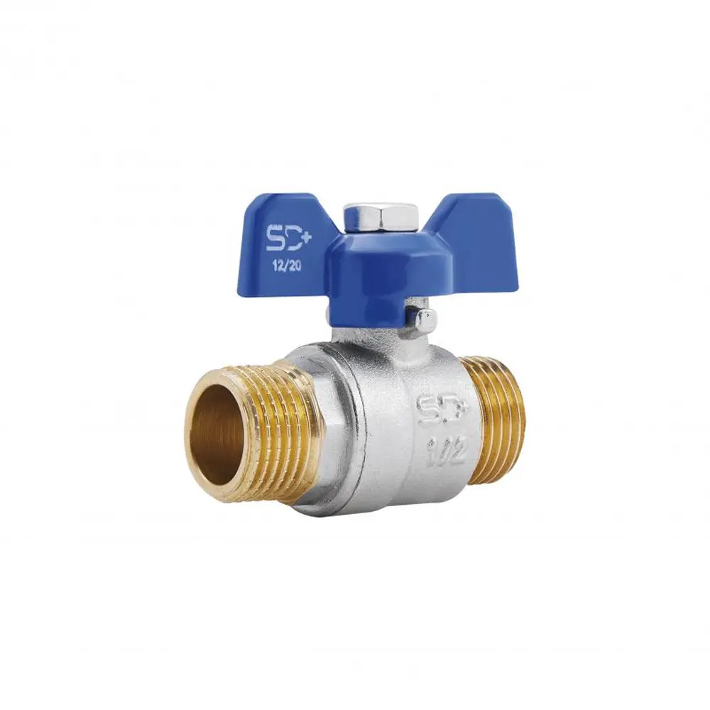 Прямий кран кульовий SD Plus 1/2" ЗР для води (метелик) SD606W15 із зовнішньою різьбою з кожного боку зроблений з латуні. Зверху корпус вкритий шаром нікелю. Для управління положенням затвора-кулі (відкрито/закрито) використовують охайну ручку-метелик. Кран призначений для перекриття руху робочого середовища в системах водопостачання і опалення. Не слід застосовувати для регулювання. Механізм затвора забезпечує високу надійність і герметичність.