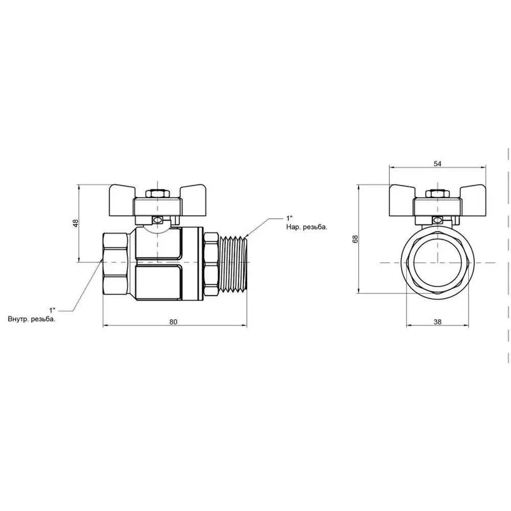 Повнопрохідний кульовий кран ICMA 1" з червоним метеликом, зовнішньою/внутрішньою різьбленнями, противибуховим штоком з подвійним гумовим кільцем, патрубком (система "Антипротіканням"). Кульовий кран ICMA застосовується в системах опалення та охолодження. Максимальна робоча температура - 150°C. виріб виконаний з високоякісної горячештампованої латуні CW617N - UNIN EN 12165, покриття - нікелювання.