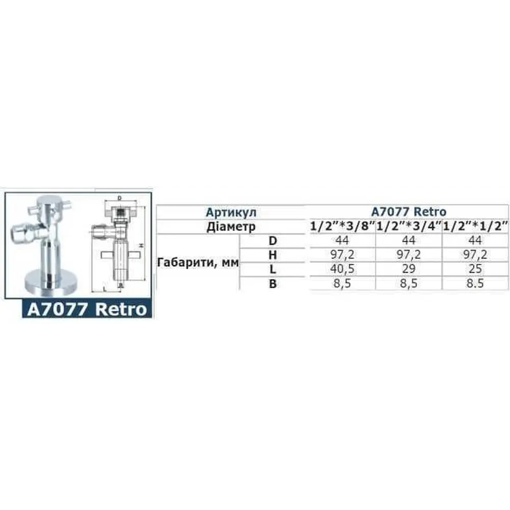 Кран кутовий кульовий напівперевертня з цангою 1/2 "х 3/8" Solomon 1STAR (Retro) (7077)