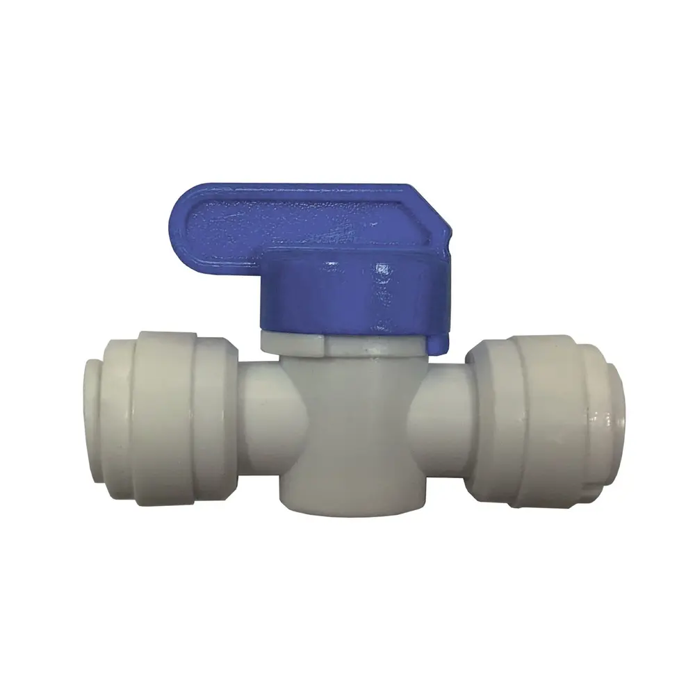 Проходной кран для систем очистки воды с быстросъемными подключениями.