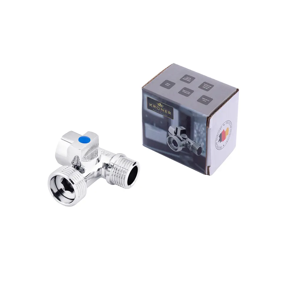 Кран приладовий 3-х ходовий Kroner (KRP) Eckventil C103 1/2''х3/4''х1/2'' ЗЗВ виготовляється з високоякісної латуні. Застосовується для підключення сантехнічних приборів.
