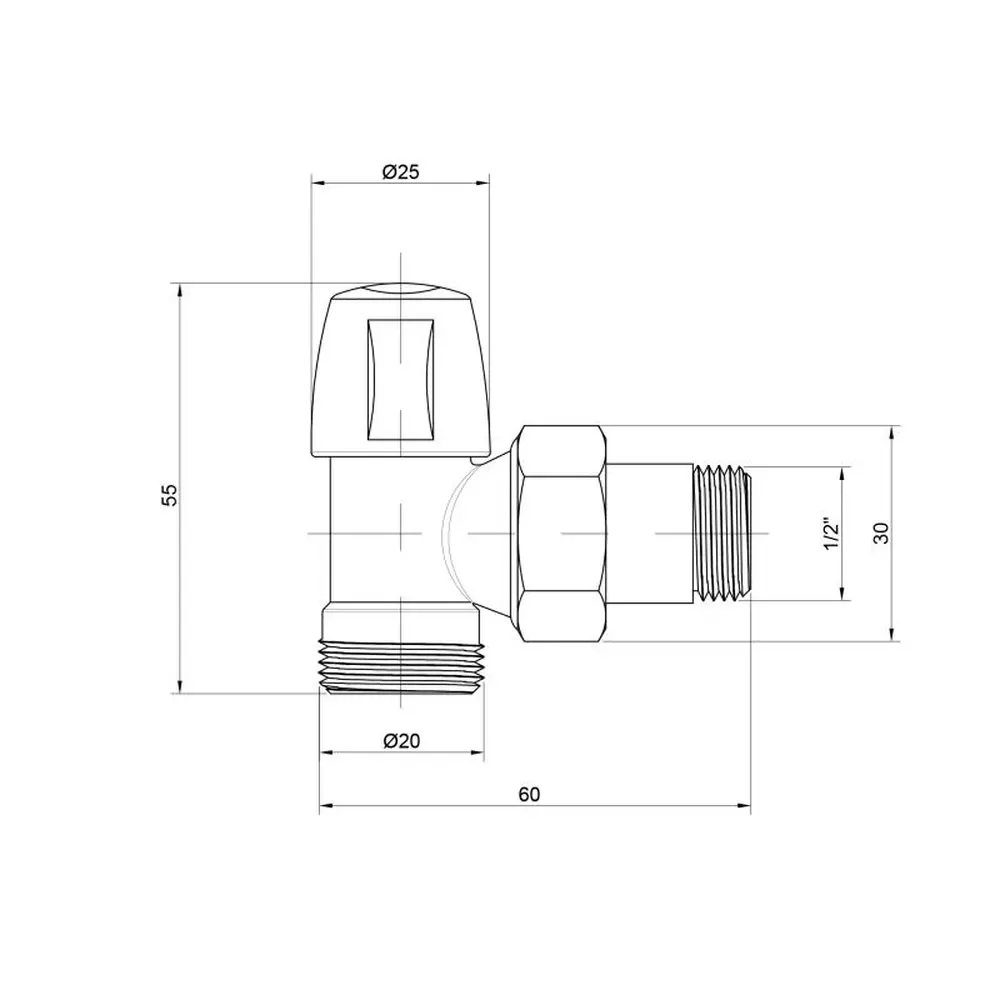 Ручний нижній вентиль ICMA 1/2" призначений для обмеження максимального протоку теплоносія через опалювальний прилад. Налаштування цього вентиля проводиться фахівцем один раз відповідно до вказівок проекту і закривається спеціальним ковпачком. Вентіль виготовлен з високоякісного матеріалу. Корпус вентиля виконаний з високоякісної гарячештампованої латуні. Зовнішнє покриття - нікель. Ручка вентиля виконана з ударостійкого полістиролу. Максимальна температура використання - 120°С.