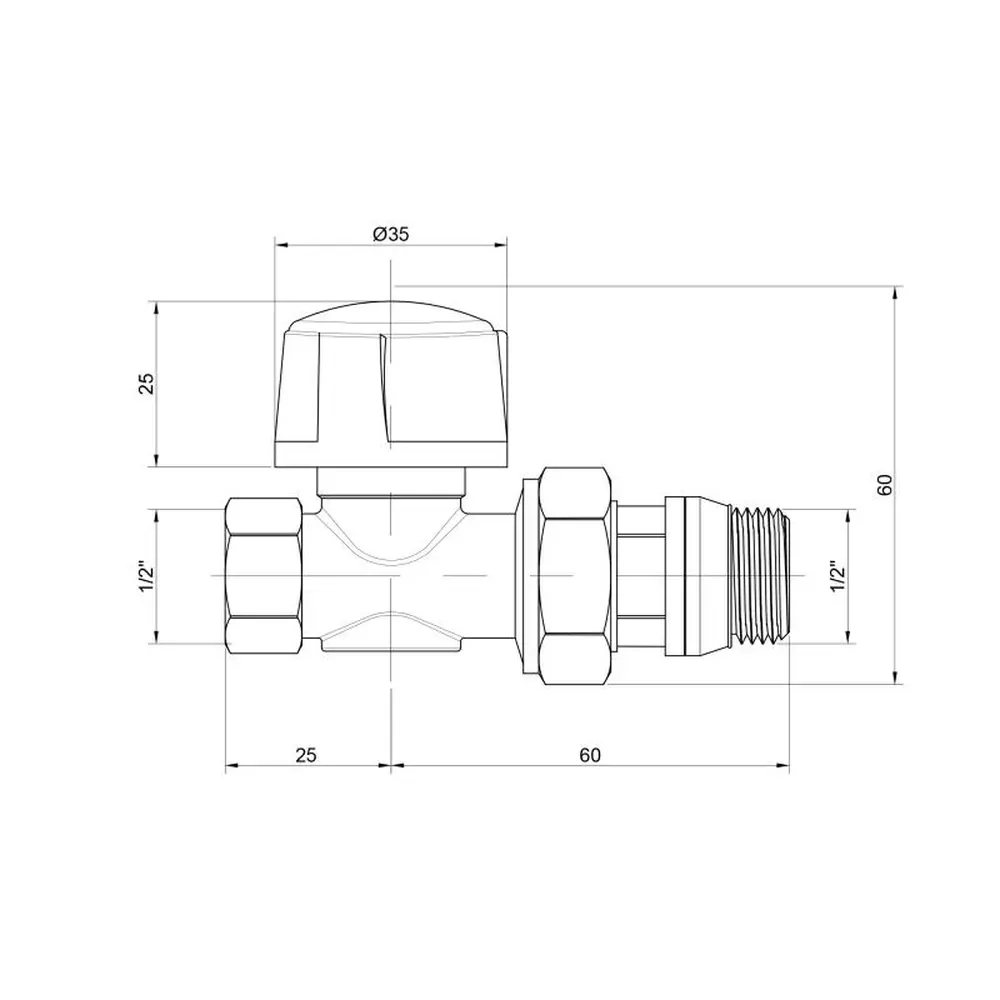 Прямий термостатичний вентиль простого регулювання ICMA 3/4" призначений для регулювання теплового режиму опалювального приладу шляхом зміни кількості теплоносія від нуля до величини, яка визначена даним налаштовувальним вентилем. Такий принцип регулювання дозволяє виробляти плавне регулювання і знижувати шуми, що виникають в системі опалення при русі теплоносія. Корпус вентиля виконаний з високоякісної горячештампованої латуні, зовнішнє покриття - нікель.