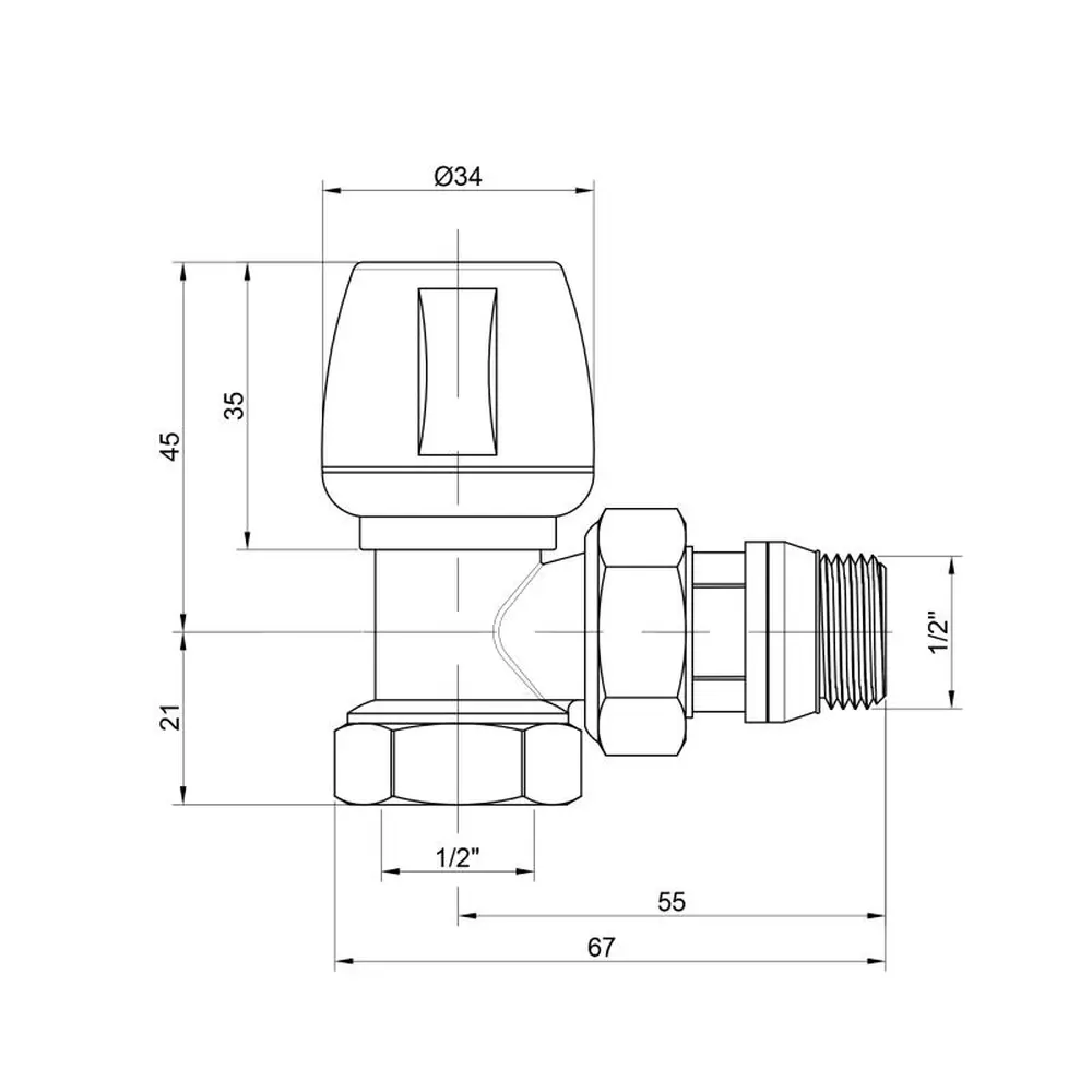 Ручний верхній вентиль ICMA Арт. 803+940 1/2" призначений для регулювання теплового режиму опалювального приладу шляхом зміни кількості теплоносія від нуля до величини, яка визначена даним налаштовувальним вентилем. Такий принцип регулювання дозволяє виробляти плавне регулювання і знижувати шуми, що виникають в системі опалення при русі теплоносія. Корпус вентиля виконаний з високоякісної горячештампованої латуні CW614N - UNI EN 12165, зовнішнє покриття - нікель.