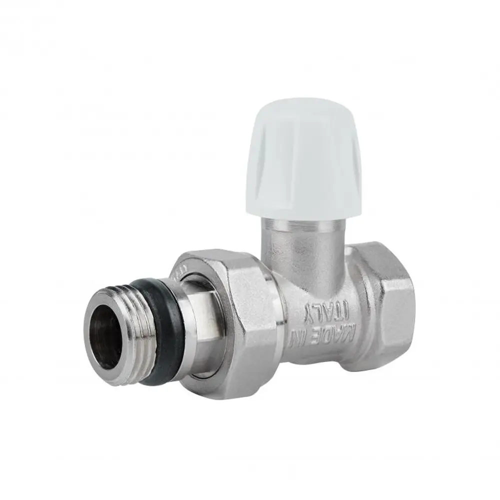 Нижні запірно-регулюючі клапани ICMA Арт. 815 + 940, застосовуються для регулювання і припинення витрати теплоносія в радіаторі. Клапани даної серії, оснащені накидною гайкою і патрубком, що полегшує установку крана, гарантуючи надійність монтажу. Вентилі ICMA виконані з високоякісної горячештампованої латуні CW617N - UNI EN 121655, зовнішнє покриття вентиля - нікелювання. Максимальна температура використання - Т = 120 ° С.