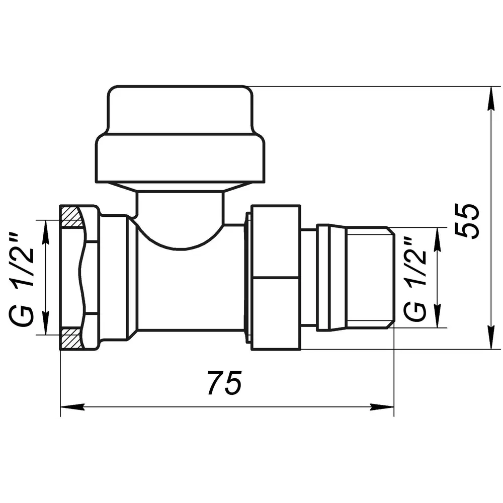 Кран прямий 1/2" під термоголовку з ущільнювачем для радиаторів ECO Technology ECO5028
