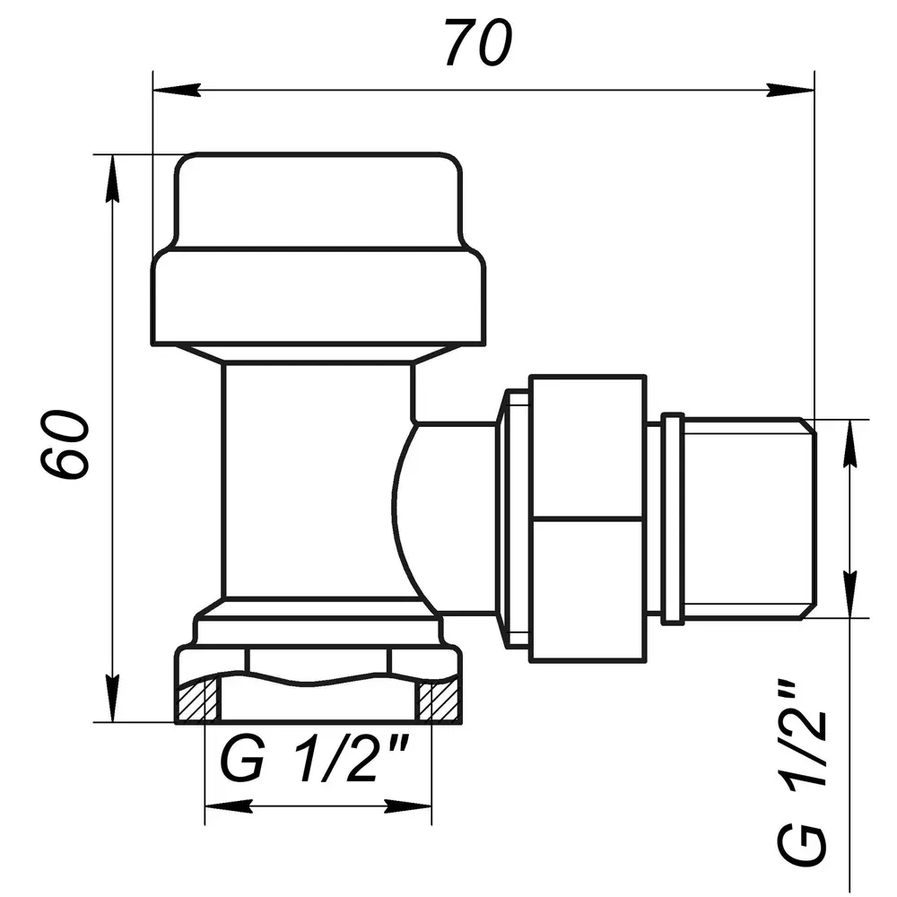 Кран кутовий 1/2" під термоголовку з ущільнювачем для радиаторів ECO Technology ECO5027