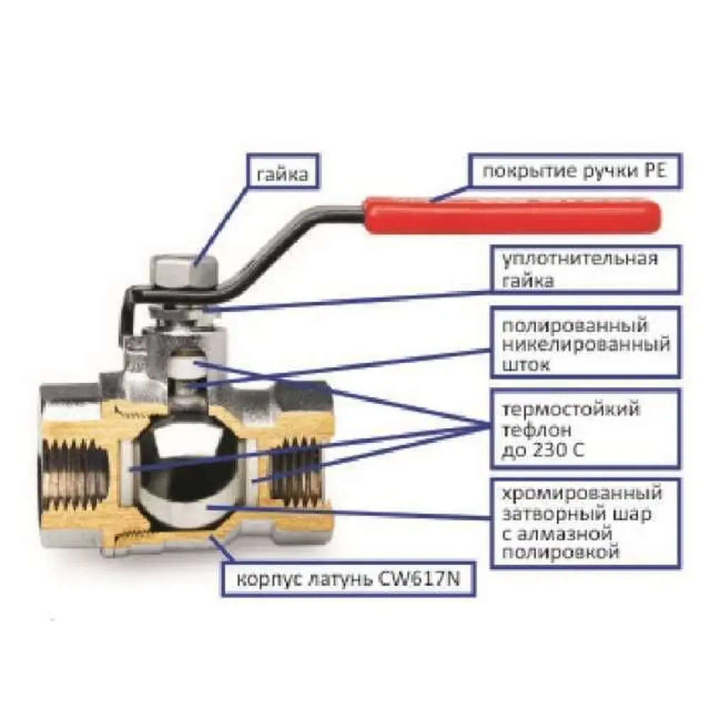 Латунні штоки і кульові затвори, оброблені методом полірування, що позбавляє від прилипання і закипання сторонніх часток на деталях запірної арматур