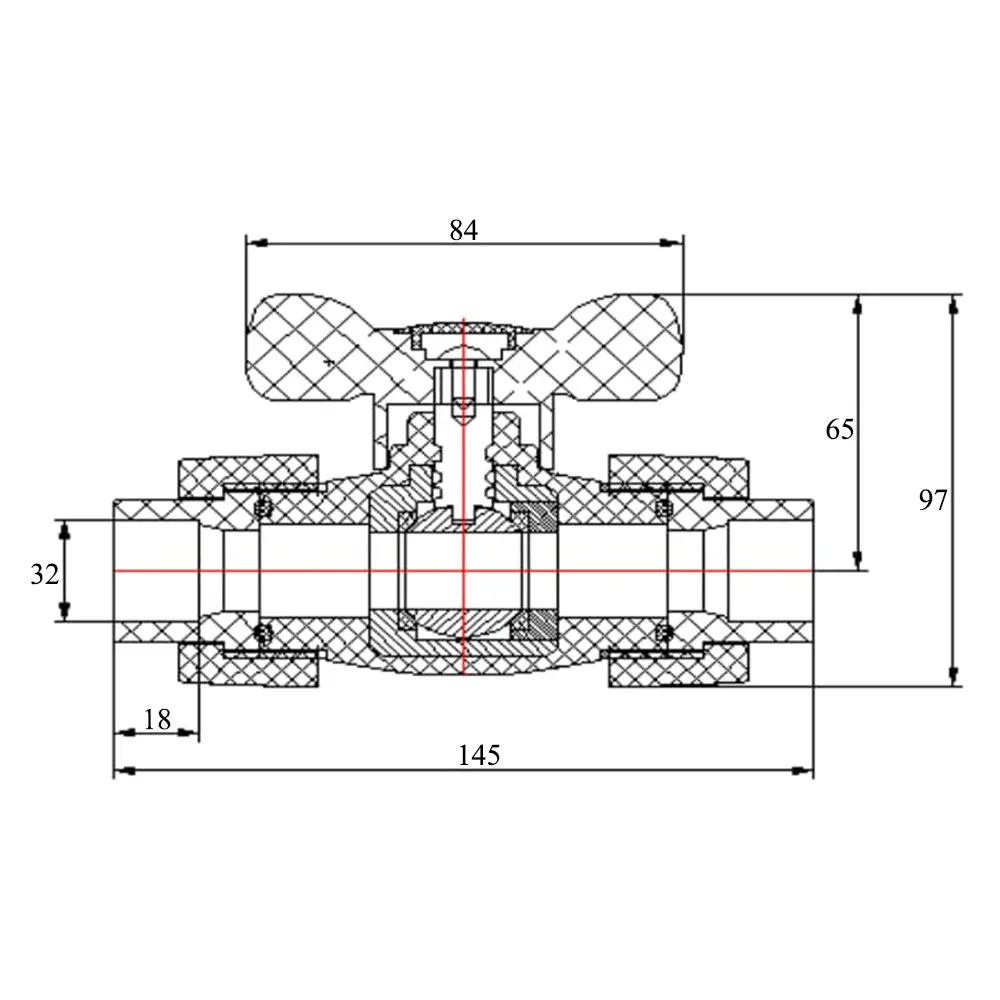 Кран шаровой Blue Ocean 32, универсальный устанавливают в системах с температурой рабочей жидкости до 60 ° C. Функция устройства ручное перекрытия движения потока. Положение открыто / закрыто меняют поворотом ручки-бабочку на 90 градусов. Материал корпуса полипропилен, шток сделан из латуни, механизм затвора с ABS (ударопрочный пластик). Присоединительный размер приварных разъемных головок (входят в комплект поставки) 32 миллиметра. Способ соединения сварки полифузне.