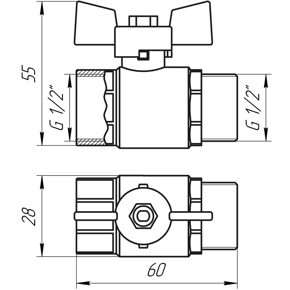 Технические характеристики PROFESSIONAL 1/2 нв Бабочка Q152 PN40 (210 grm):
