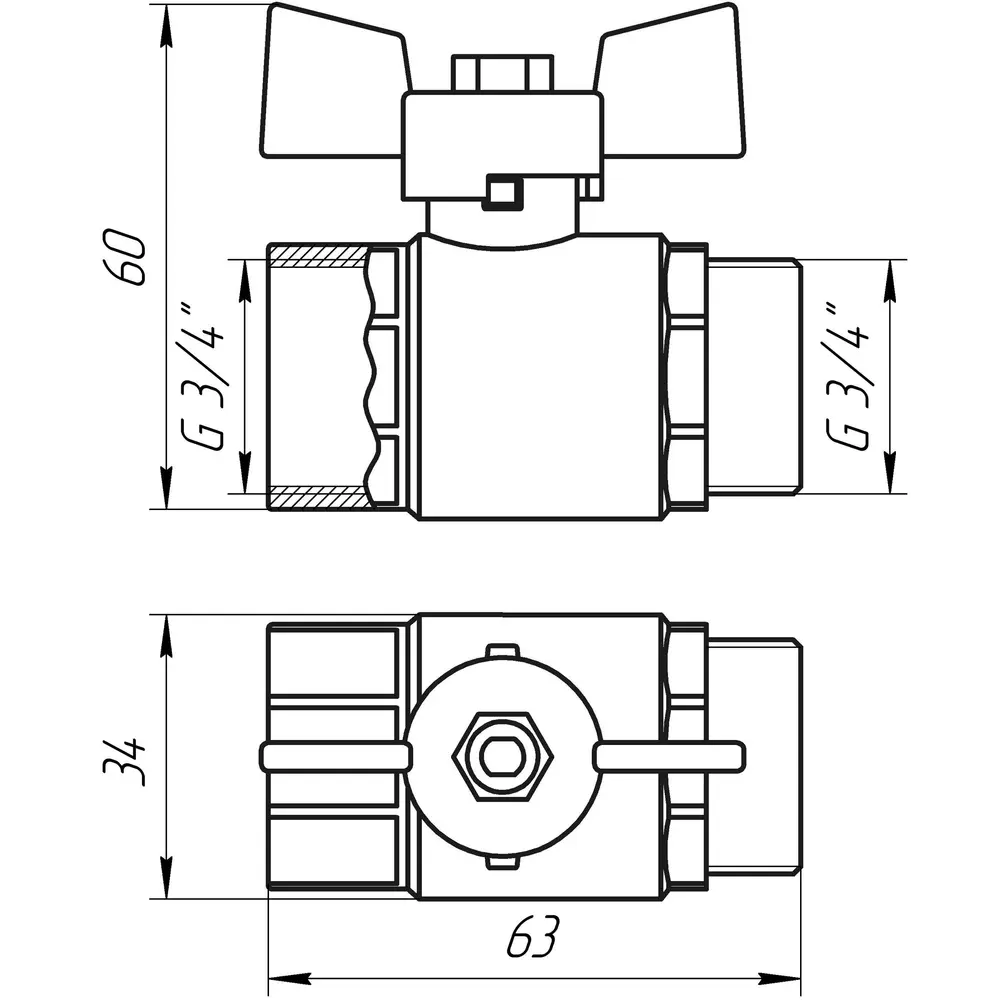 Технические характеристики PROFESSIONAL 3/4 нв Бабочка Q152 PN40 (210 grm):