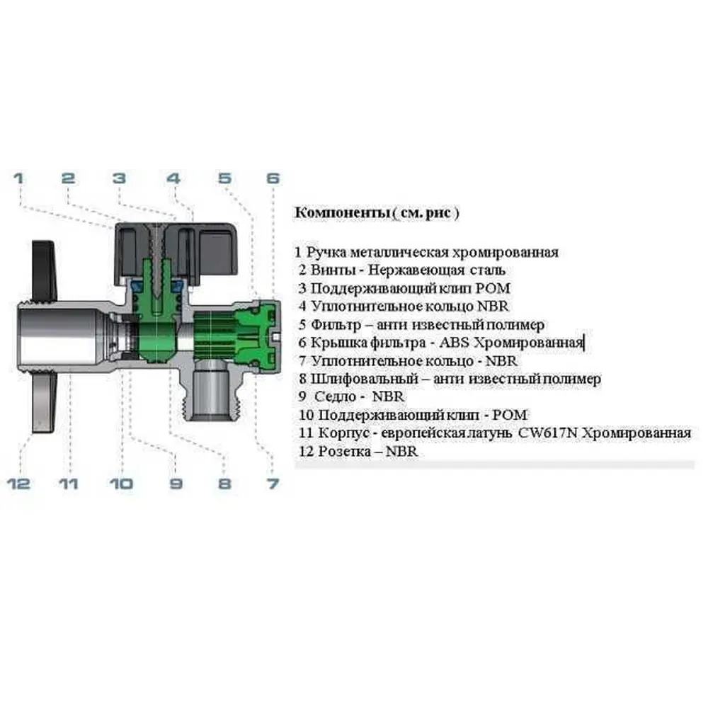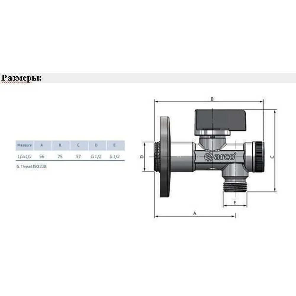 Технічні характеристики Кран кутовий кульовий 1/2 "х 1/2" ARCO Spain (DE705 AntiLime) з фільтром