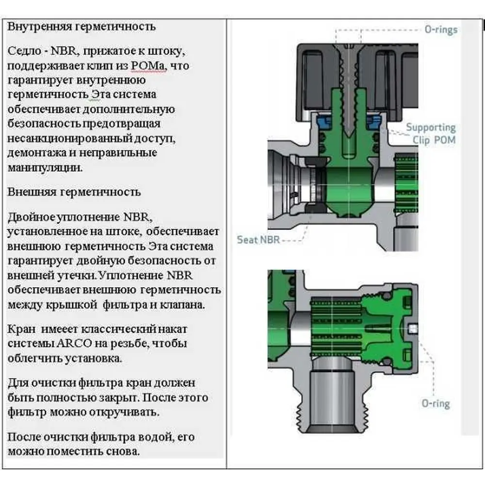 Подвійне ущільнення NBR, встановлене на штоку, забезпечує зовнішню герметичність Ця система гарантує подвійний безпеку від зовнішньої утечкі.Уплотненіе NBR забезпечує зовнішню герметичність між кришкою фільтру і клапана.