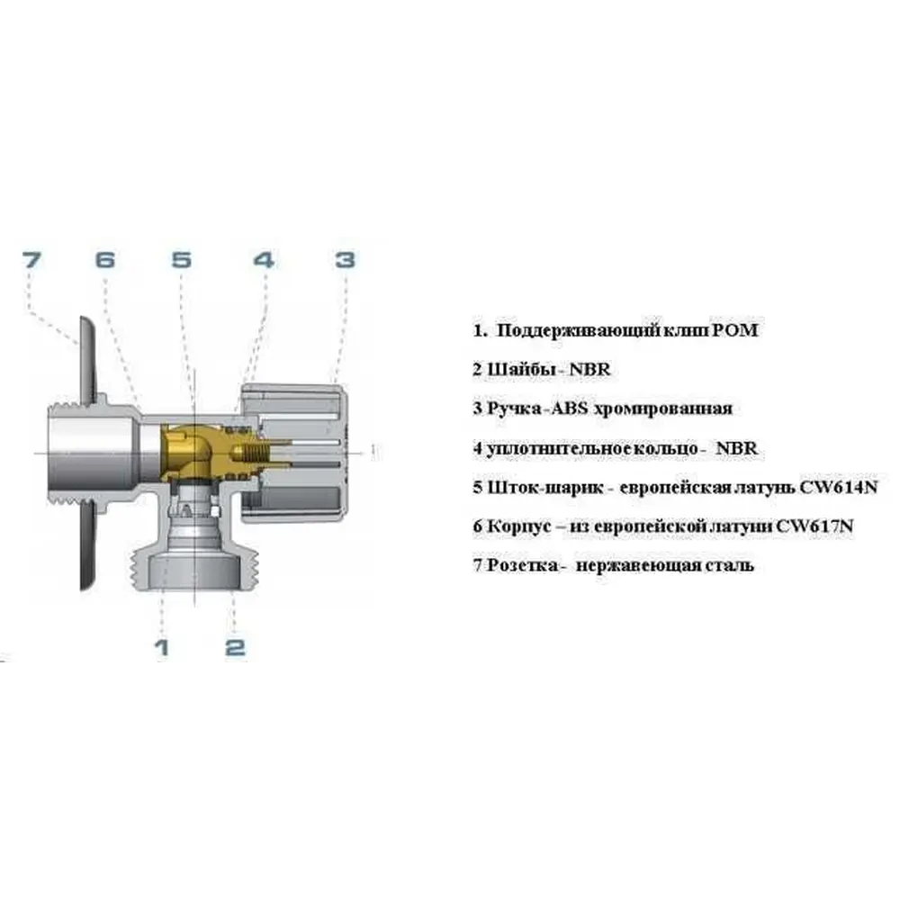 Корпус виробу виготовлений з високоміцної нікельованої латуні марки CW614N Euro. Крім того кран додатково хромований для високого порогу корозостійкості