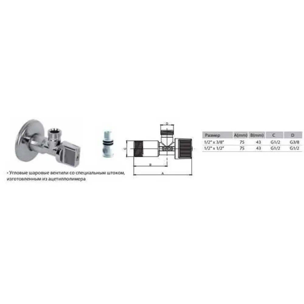Технічні характеристики крана кутового кульового кульовий 1/2 "х 3/8" з цангою ARCO Spain (DE610-615 AntiLime):