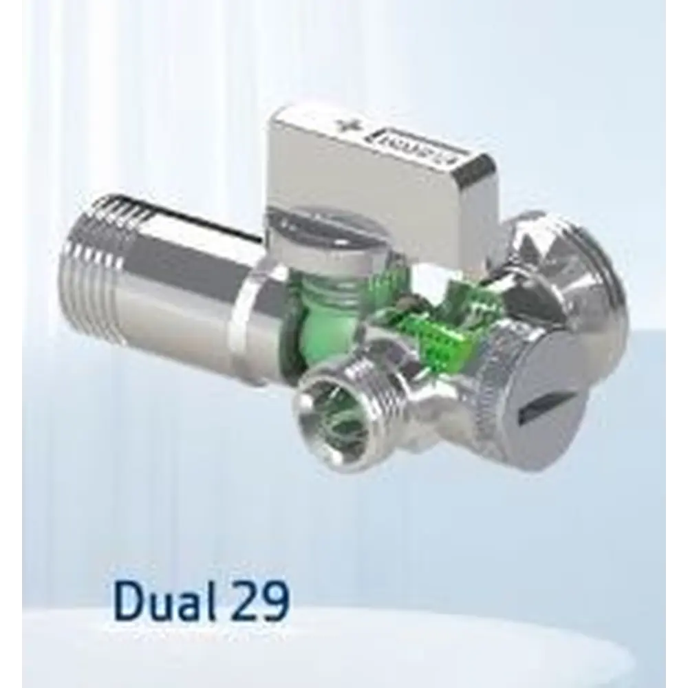Кран кутовий кульовий подвійний 1/2 "х 1/2" х1 / 2 "ARCO CQ4105 AntiLime A80TWIN обєднує 2 незалежних виходу в один корпус і використовується в сантехнічних установках. Ці клапани являють собою систему VITAQ, яка показала відмінні результати. Внутрішній механізм, виконаний зі спеціального матеріалу який мінімізує вплив вапна на клапани. Ці клапани можуть відключати індивідуально і незалежно від водопостачання обладнання або компоненти, підключені до кожного з двох його виходів, таких як раковини, туалети, цистерни .Моделі A-80 TWIN предлаг ают 2 незалежних виходу від одного входу з мережі питної води.