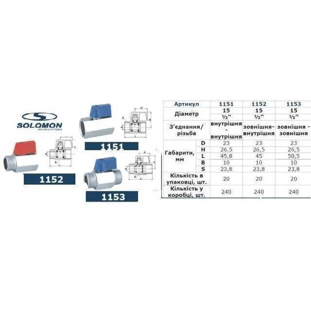 Технічні характеристики Кран кульовий міні 1/2 "нв Solomon 1152: