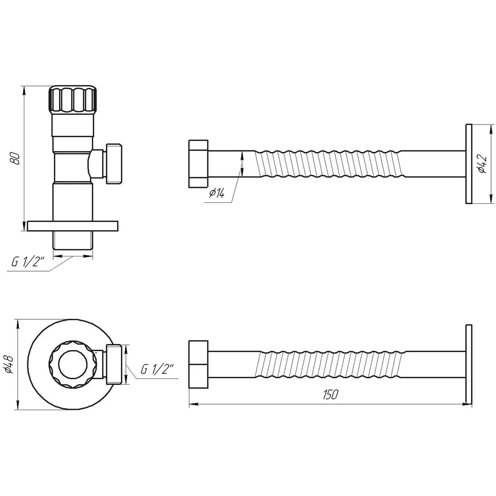 Кран вентильный удлиненный 1/2 "х1 / 2" + трубка с чашкой в ПОДАРОК RR-855 (NV-3020)