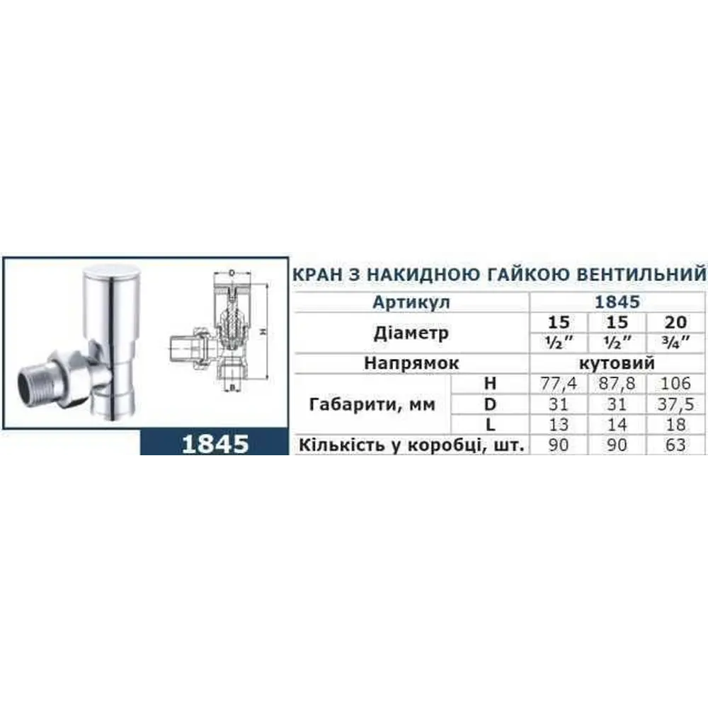 Кран с нак. гайкой 3/4 "угловой вентильный CHROM Art. 1845 Solomon