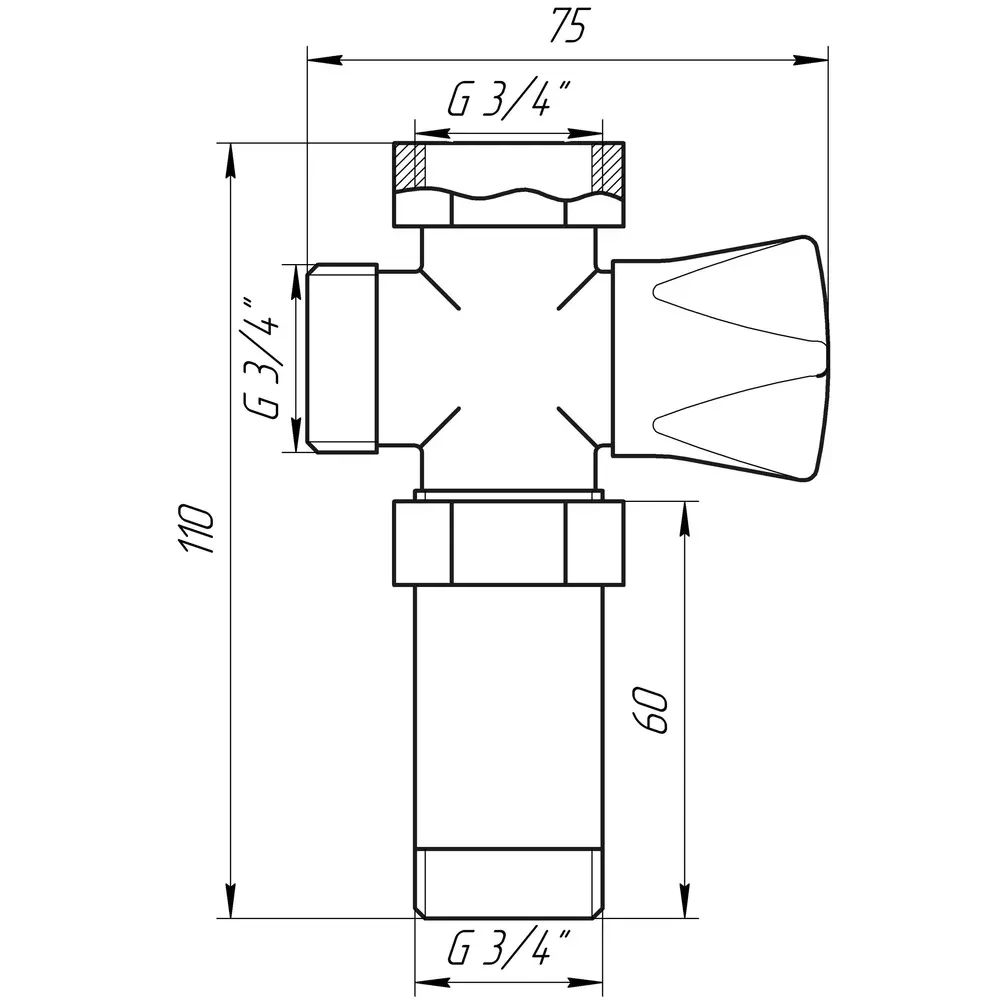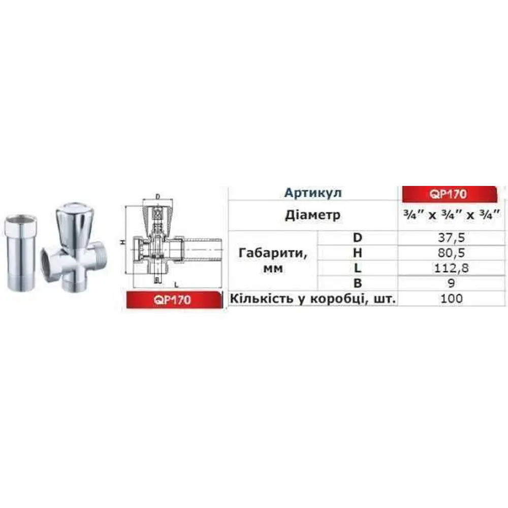 Кран наскрізної для пральної машини 3/4 * 3/4 * 3/4 вентильний з подовженою обертається гайкою NV-QP170 Professiona
