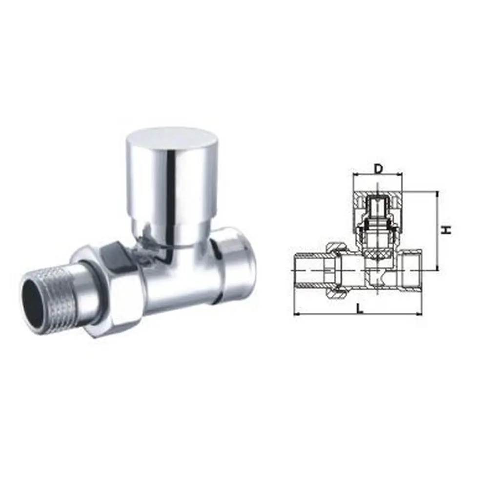 Кран вентильний з накидною гайкою Solomon призначений для настройки теплового режиму опалювального приладу шляхом зміни кількості теплоносія від нуля до величини, яка визначена даним Настроювальна вентилем. Такий принцип регулювання дозволяє виробляти плавне регулювання і зменшувати шуми, що виникають в системі опалення вчасно русі теплоносія