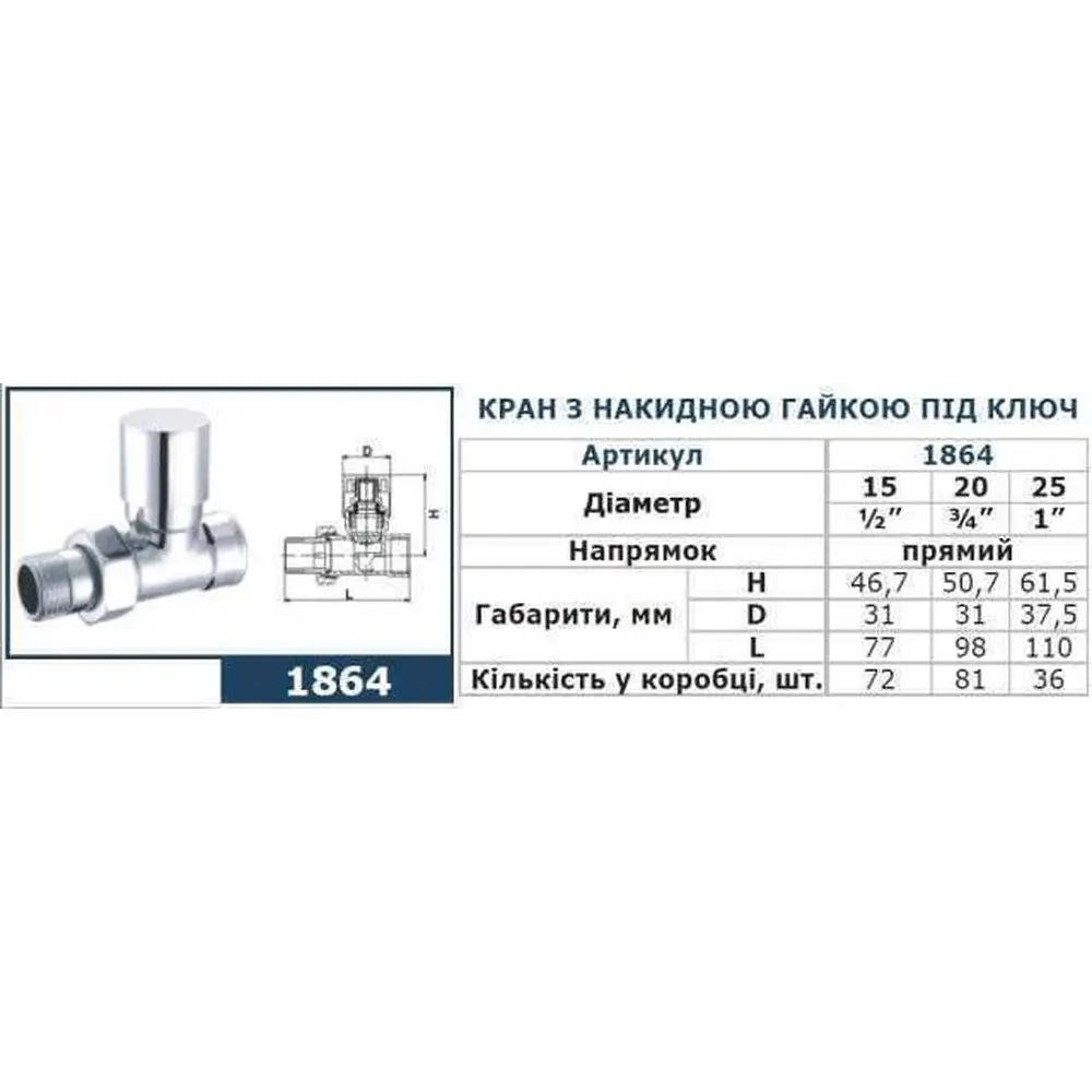 Кран з накидною гайкою 3/4 "прямий під ключ CHROM Art. 1864 Solomon