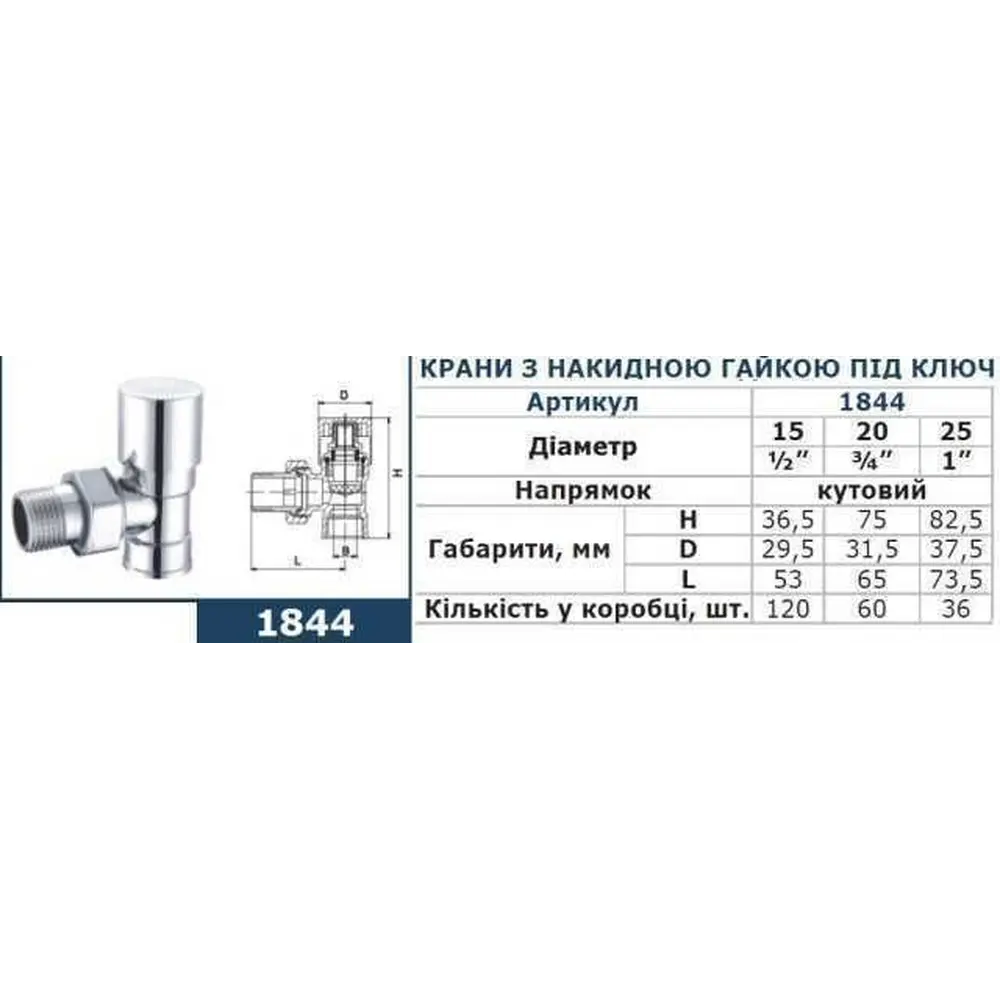 Кран з накидною гайкою 3/4 "кутовий під ключ CHROM Art. 1844 Solomon