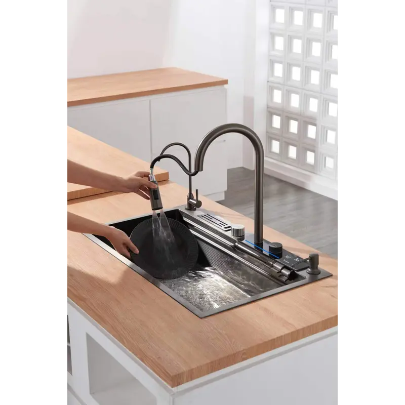 Взяли змішувач TOPAZ SARDINIA з чорним гофрованим гусаком — виглядає дуже стильно на кухні. Лійка-душ зручна, можна переключати режими струменю, мити посуд стало набагато легше. Монтував сам — все підійшло без проблем, якість матеріалів хороша.