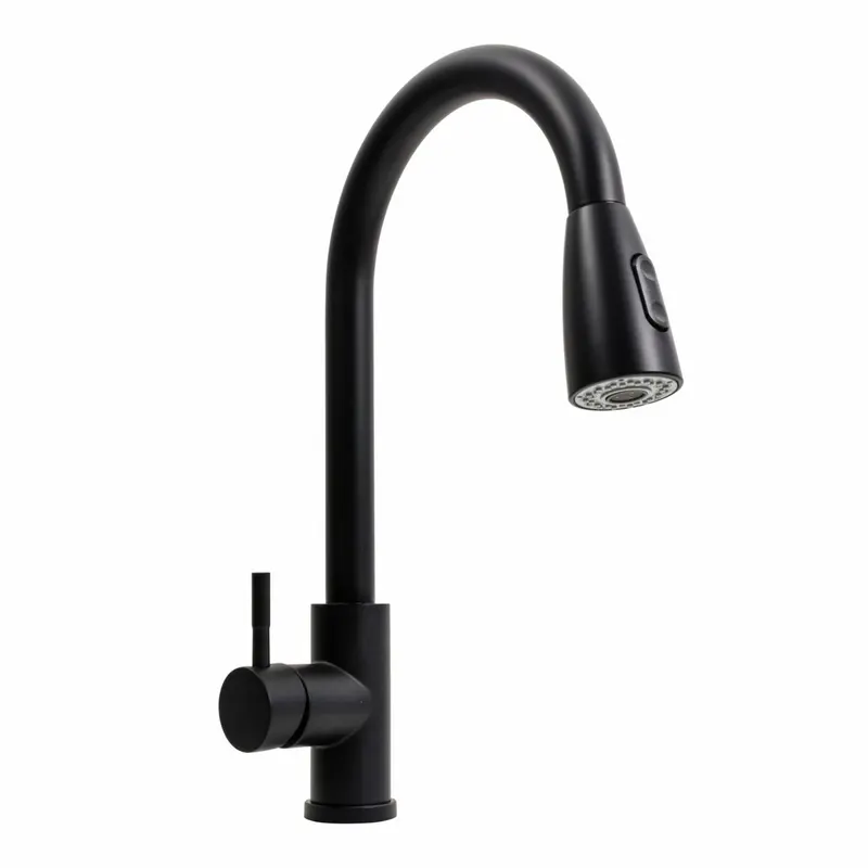 Чорний змішувач для кухні з висувним виливом Nett FBG-44