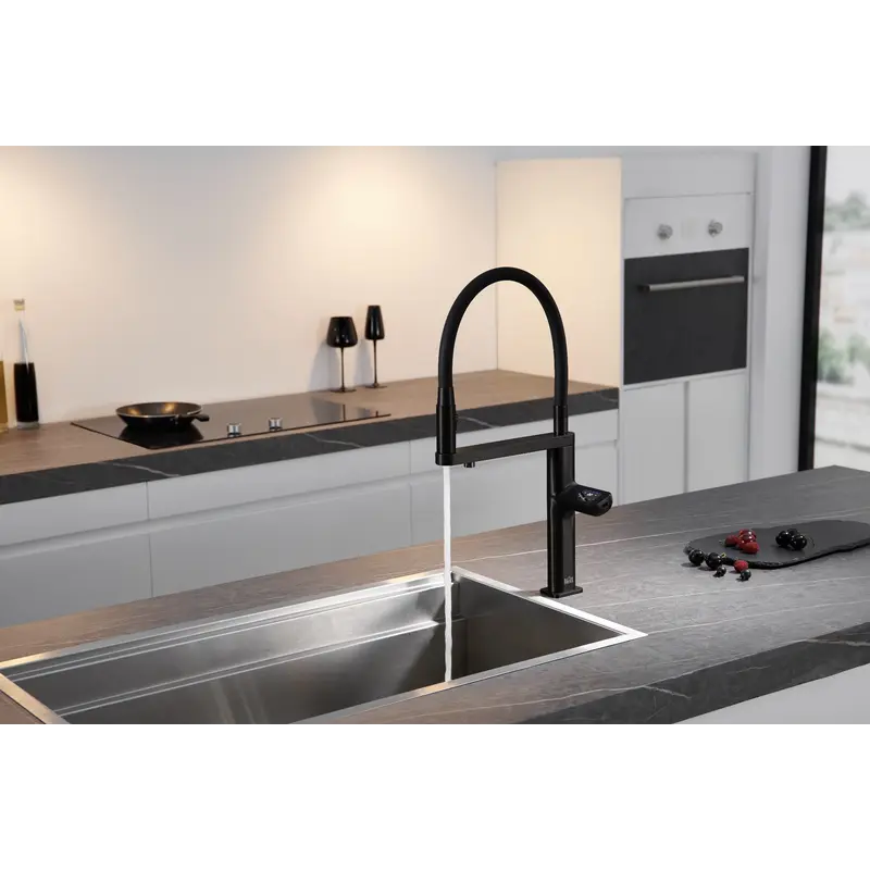 • Черные смесители – идеальный выбор для современных и минималистических кухонь, придают стильный контраст и роскошный вид.