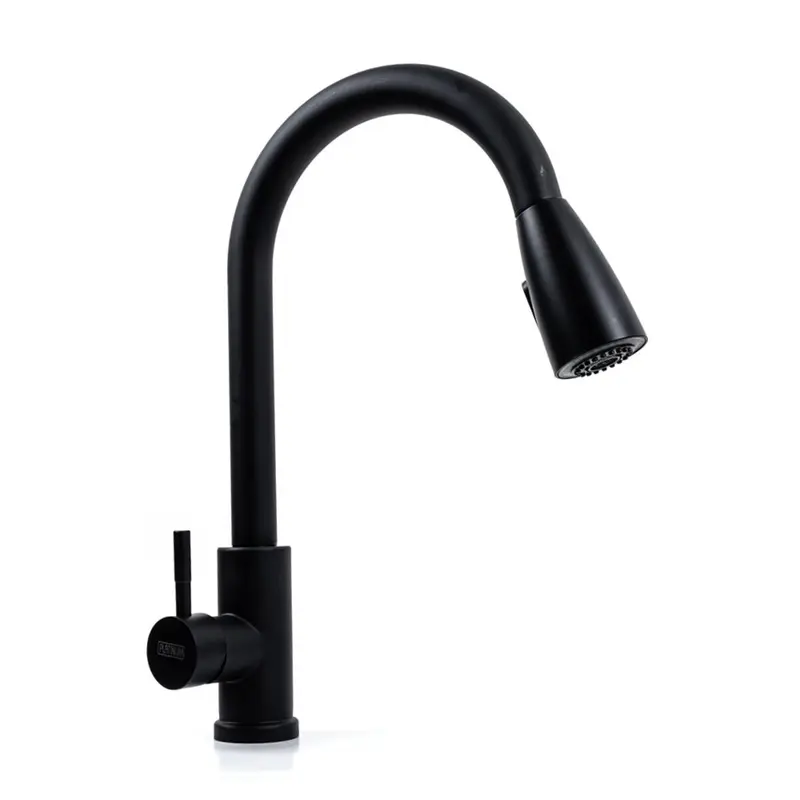 Чорний кухонний змішувач з висувним виливом "Лебідь" Nett SWB-435