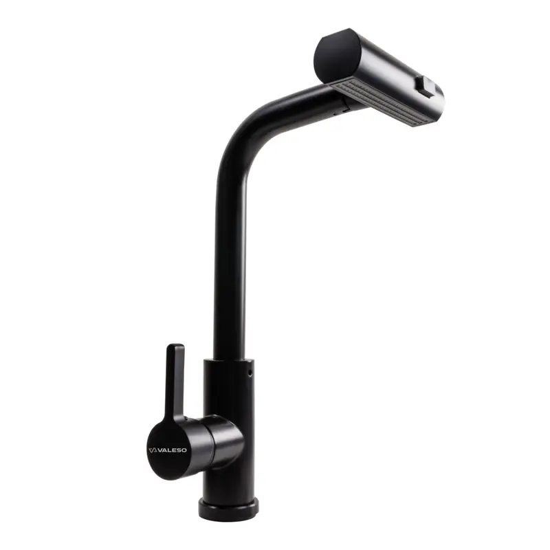 Смеситель кухонный с выдвижной воронкой VALESO Q411B Черный матовый