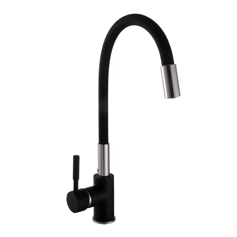 Чорний кухонний змішувач з висувним виливом "Лебідь" Nett SWB-435