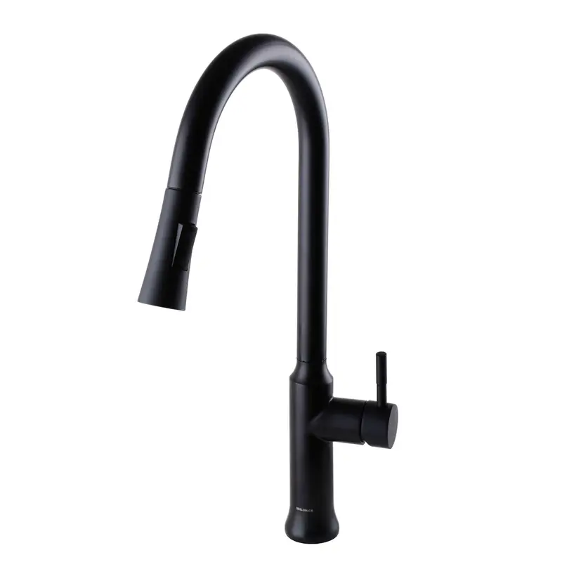 Чорний кухонний змішувач з висувним виливом "Лебідь" Nett SWB-435