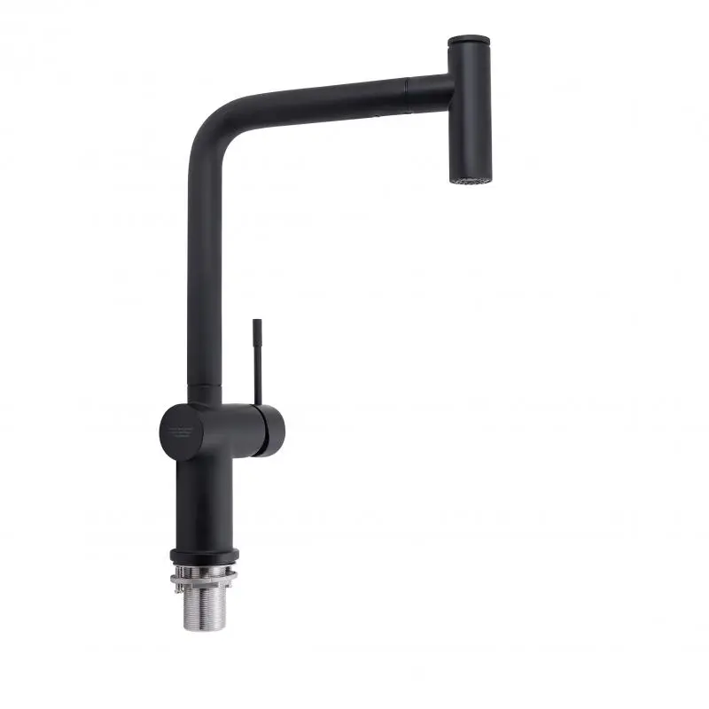 Смеситель кухонный с выдвижной воронкой VALESO Q411B Черный матовый