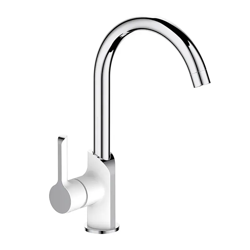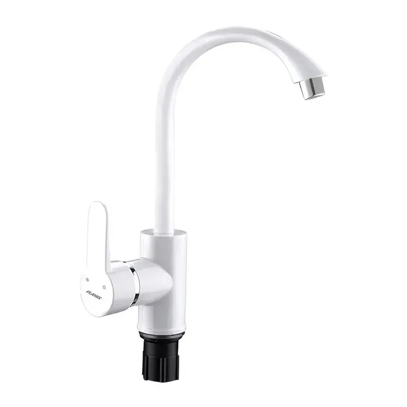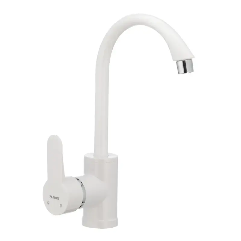 Змішувач для кухні в красивому білому кольорі і з актуальним дизайном. Масивний, зручний і виглядає дорого. Покупкою крана задоволений.