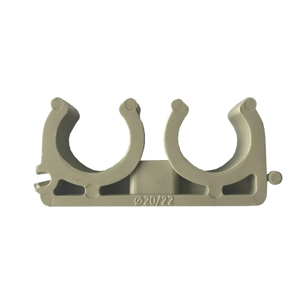 Кріплення подвійні поліпропіленові «Kalde» - це поліпропіленові фітинги, призначені в якості кріплення всіх видів поліпропіленових труб. Змінна опора кліпси два виступаючих власника і розташоване між ними отвір під дюбель-цвях, через яке елемент закріплюється на стіні. З боків кліпси передбачені зєднання типу «паз-шип» Застосовуються в системах холодного і гарячого водопостачання. Використовуються для опалення житлових, адміністративних, а також промислових будівель, при прокладці трубопроводів.