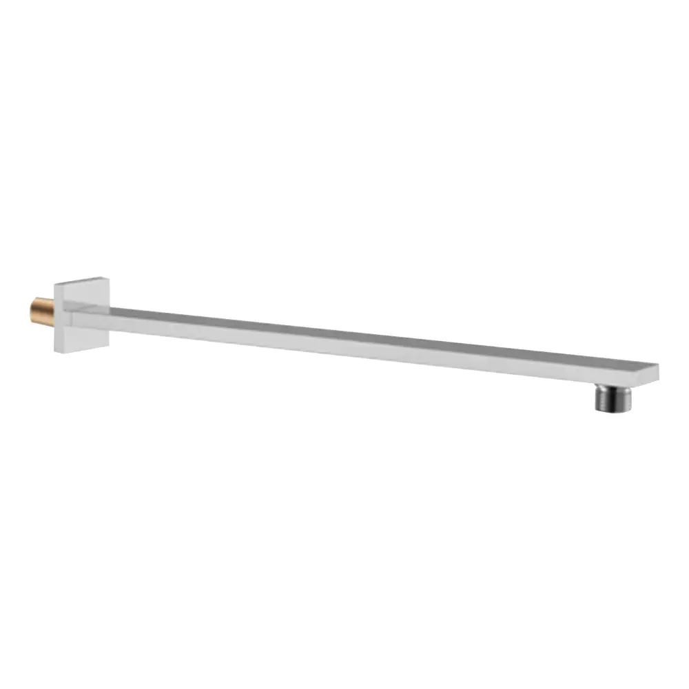 Кронштейн для верхнього душу Qtap 0011 CRM виконаний з латуні з хромованим глянцевим покриттям, завдяки чому виріб стійкий до подряпин, впливу агресивних мийних засобів, утворення корозії й зносу. Він складається з довгастого прямокутного корпусу, квадратної розетки, яка дозволяє приховати сліди настінного монтажу, а також, підводу з зовнішньою наріззю й універсальним діаметром 1/2" для підключення стельової лійки.