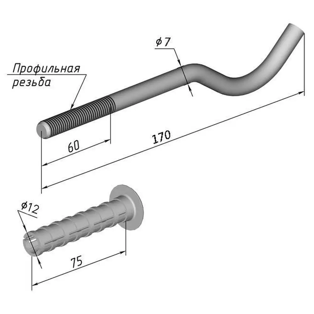 Кронштейн штирьковий, білий з дюбелем для секційних (алюмінієвих, біметалічних) радіаторів ф7х170мм (кратне 2шт)