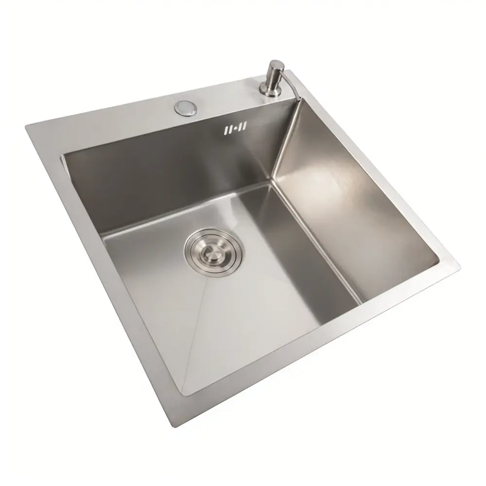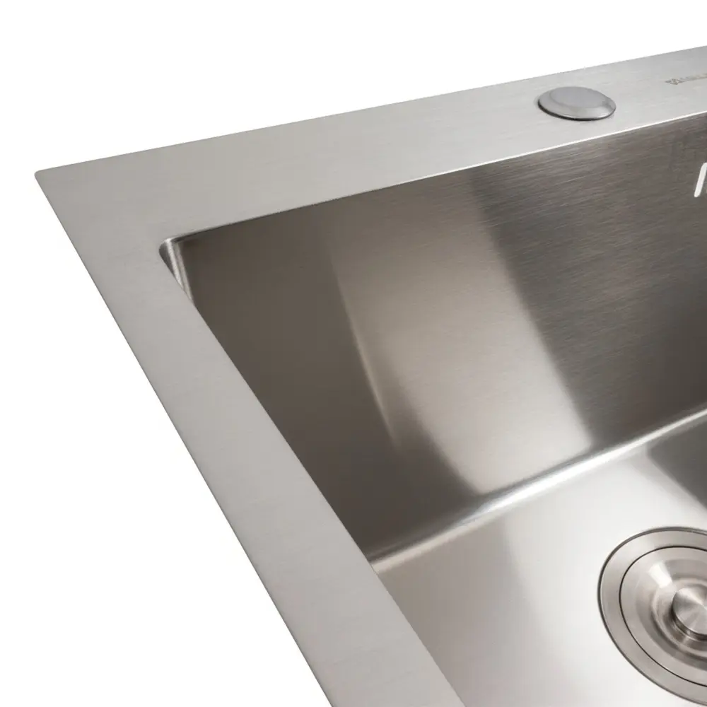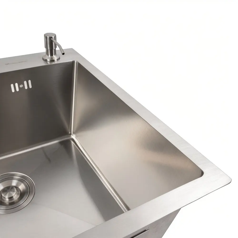 Кухонная мойка 50*50 нержавейка VALESO Handmade (сифон круглый, 3,0/0,8) – это отличное стильное решение для кухни небольших и средних размеров. Лаконичный дизайн квадратной формы хорошо подходит разным интерьерам кухни.