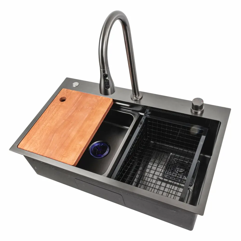 Кухонная мойка 75*45A PVD черная Platinum Handmade "ВОДОПАД" - невероятно популярная кухонная мойка, настоящий хит этого года! Ее функциональность и комплектация со смесителем делают ее незаменимым аксессуаром для любой кухни.