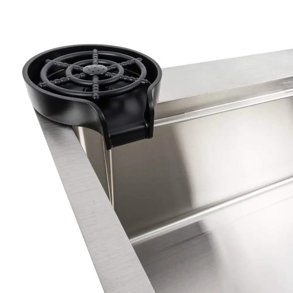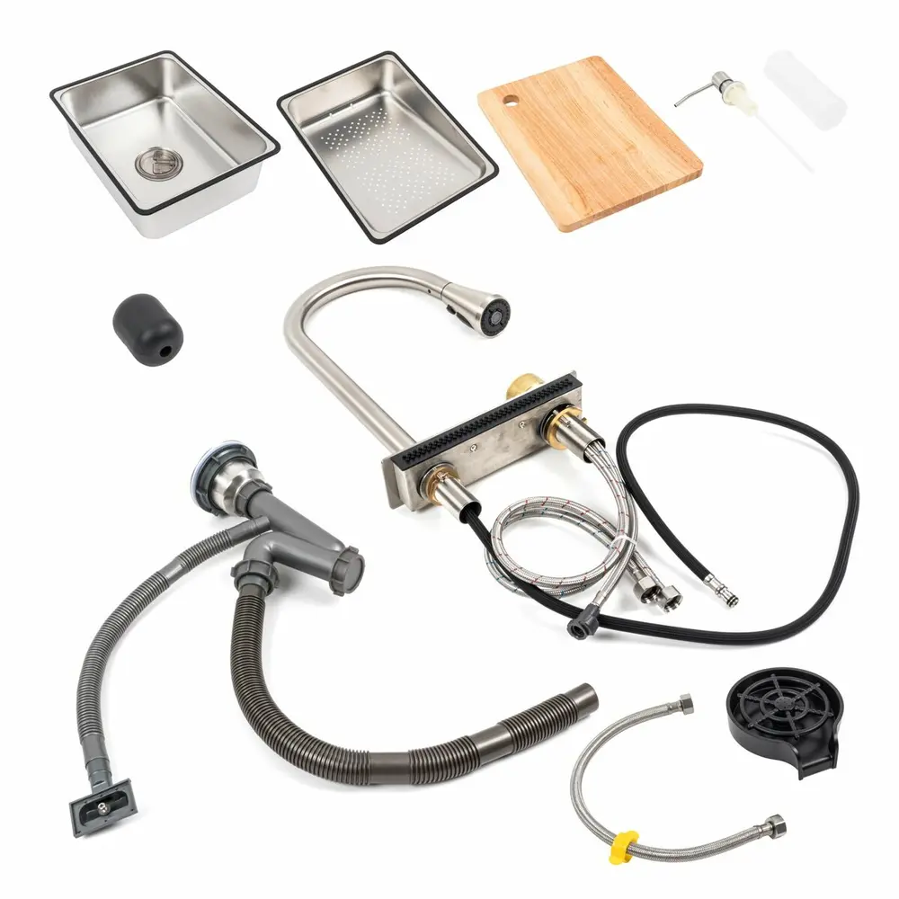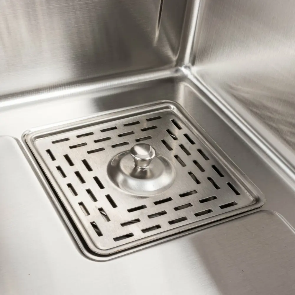Накладная мойка имеет стильный хромовый цвет, а смеситель с гибким изливом и двухуровневым ступенчатым дизайном может быть перемещен вправо или влево внутри мойки, что позволяет экономить воду, время и усилия. Глубокая и просторная раковина позволяет разместить кастрюли без брызг и легко справиться с мытьем столовых приборов.