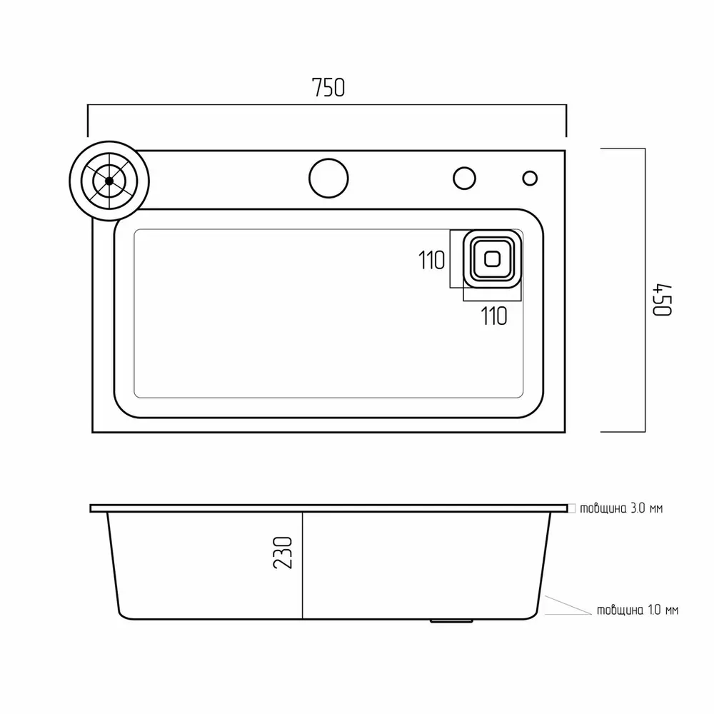 Инновационный и модернизированный дизайн раковины придаст вашей кухне новое чувство. Эта мойка удовлетворяет базовые потребности и помогает сэкономить кухонное пространство. Размеры мойки составляют 750х450х210 мм. Также в этой мойке имеется встроенный ринзер для мытья стаканов.