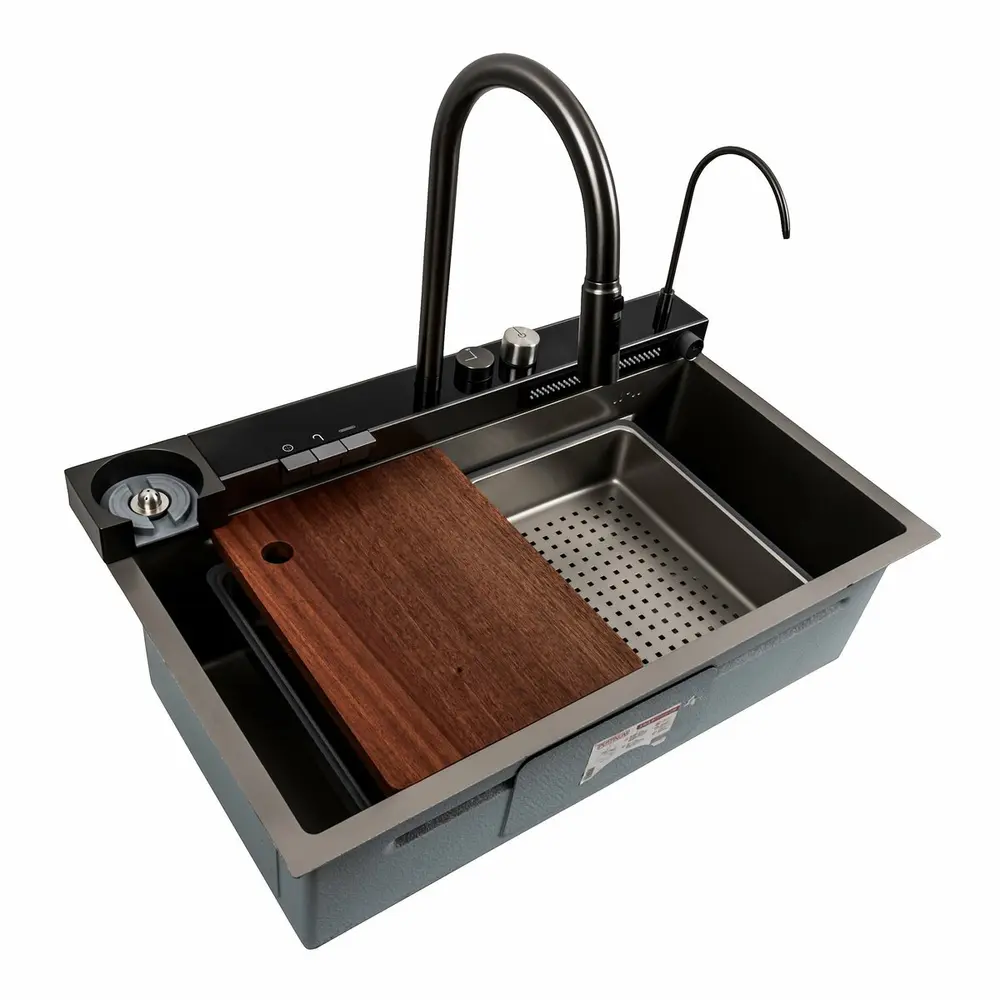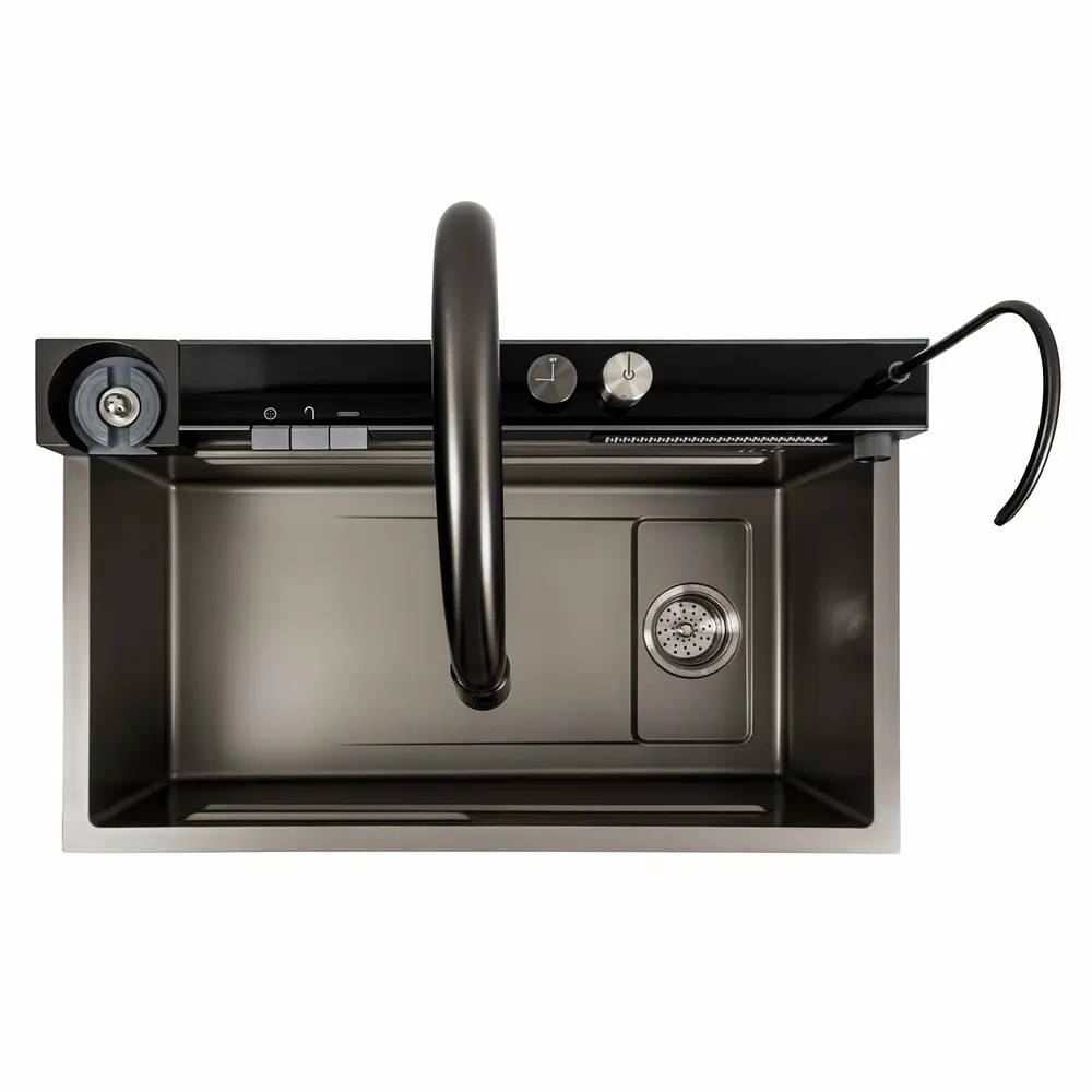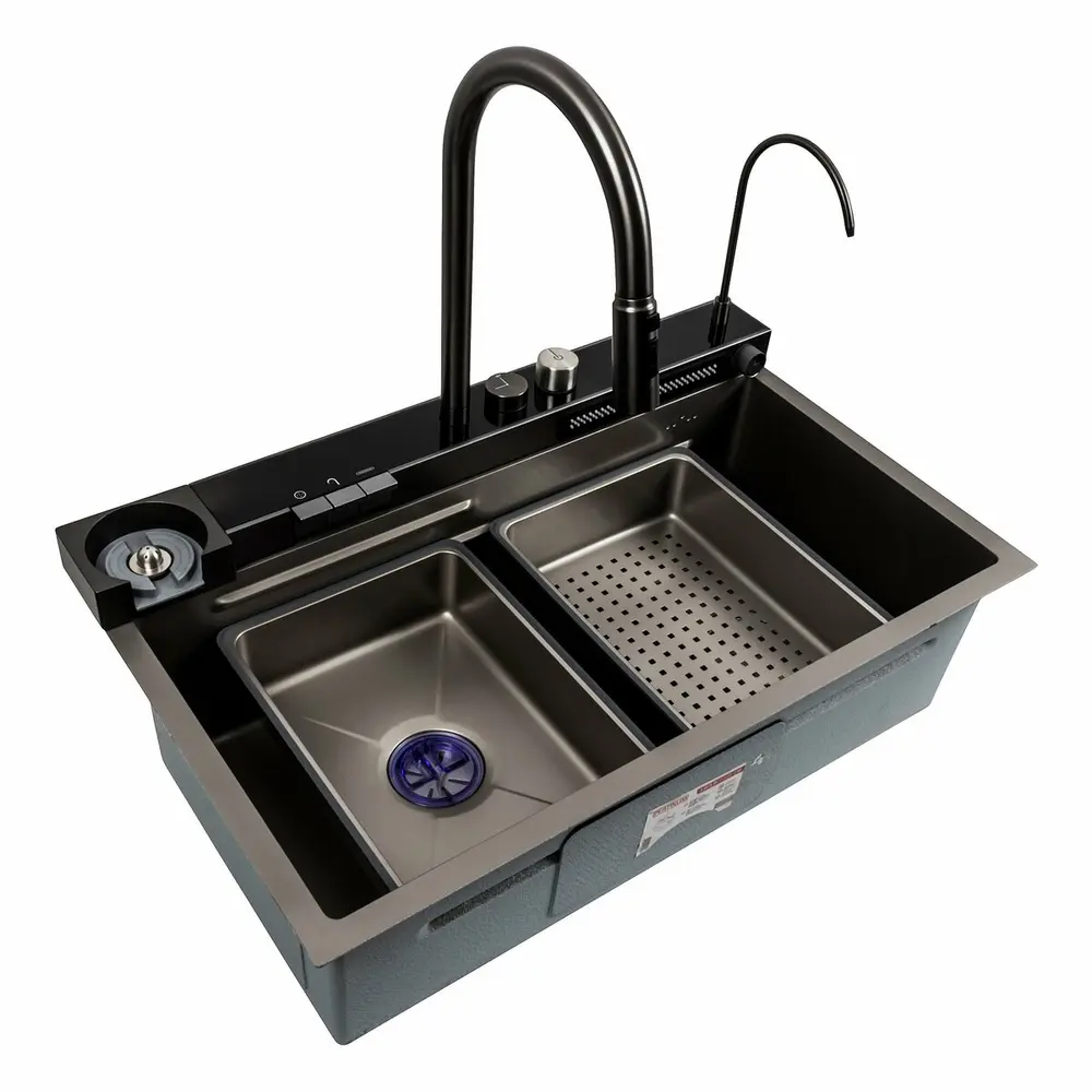Кухонная мойка 75*46D PVD серая Platinum Handmade "ВОДОСПАД" - невероятно популярная кухонная мойка, настоящее открытие! Ее функциональность и комплектация со смесителем делают ее незаменимым аксессуаром для любой кухни.