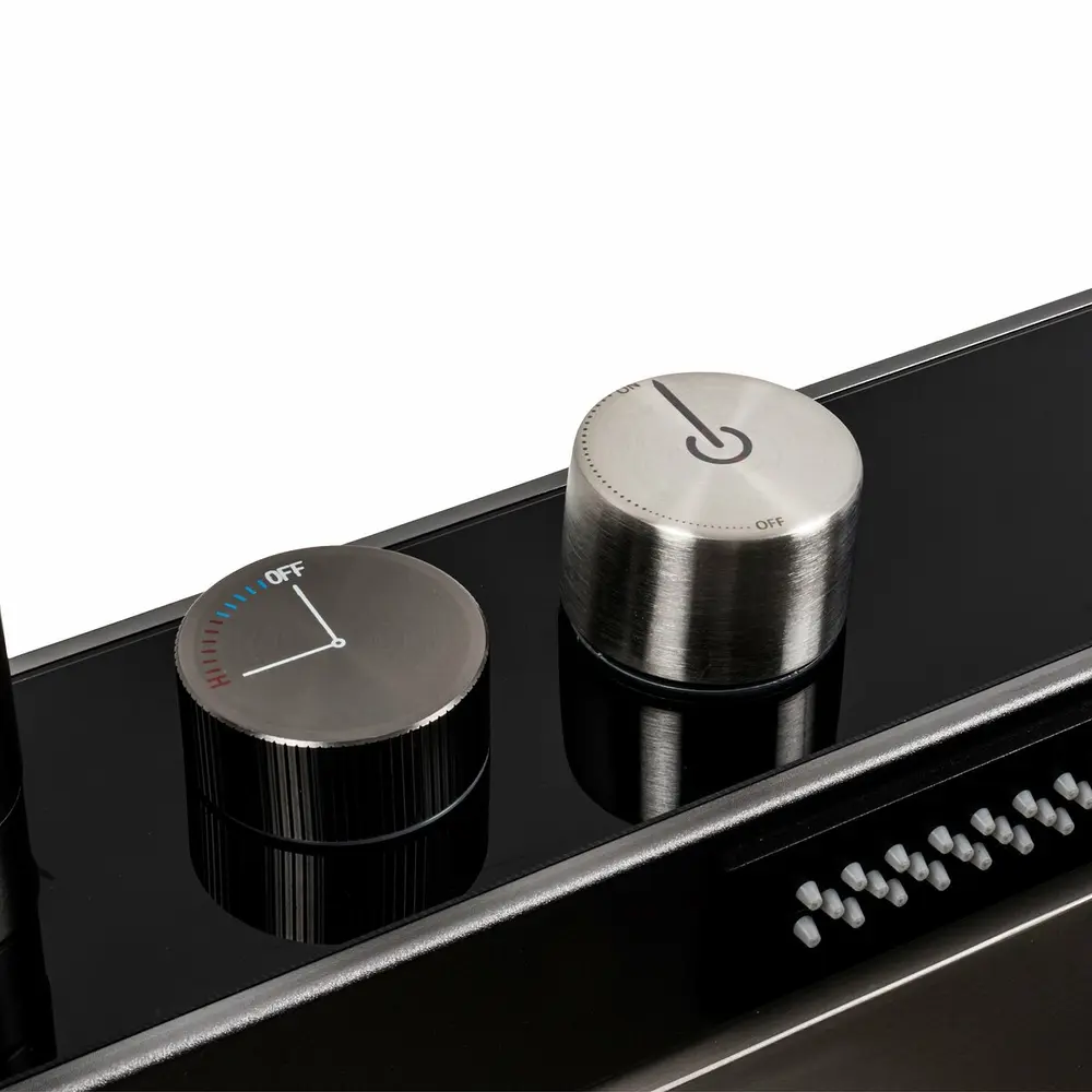 Смеситель выдвижной с душем, а также имеет удобный режим водопада, который можно менять, что позволяет комфортно мыть фрукты, овощи и зелень.