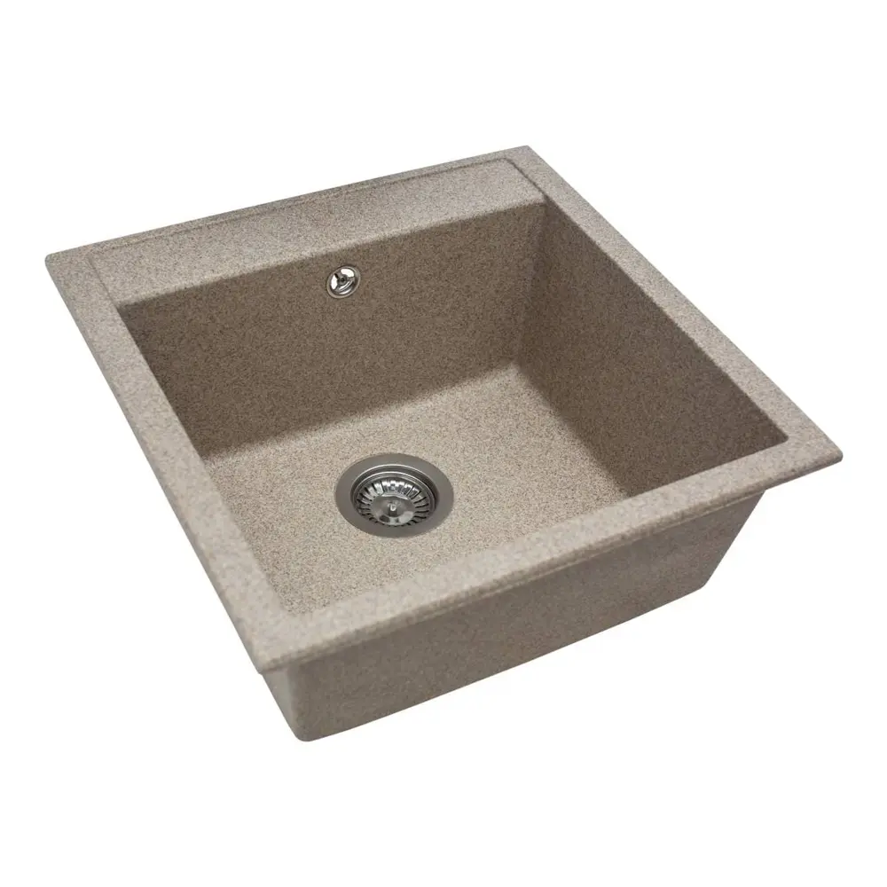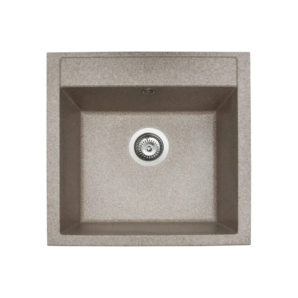 Кухонна мийка BODRUM 510 terra має однорідну текстуру та колір. Вона не всочує запахи, відштовхує жир та забруднення, а також не змінює кольору в процесі експлуатації.