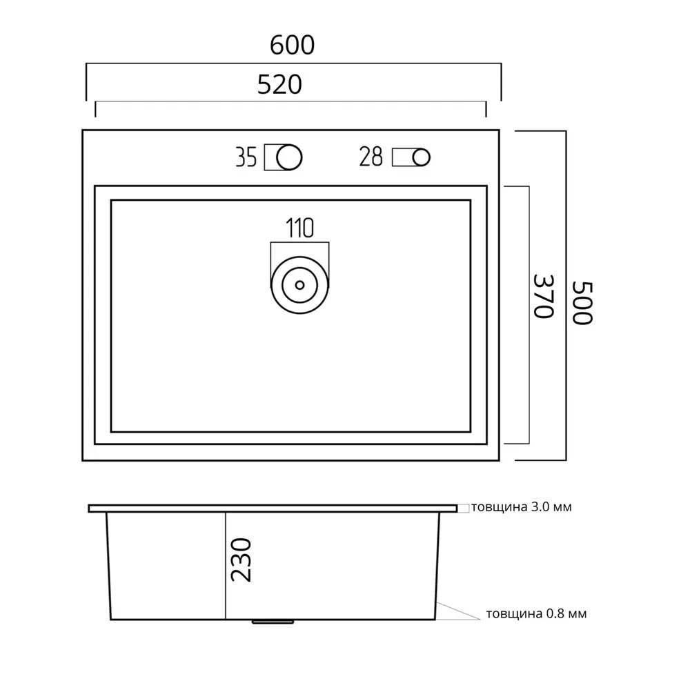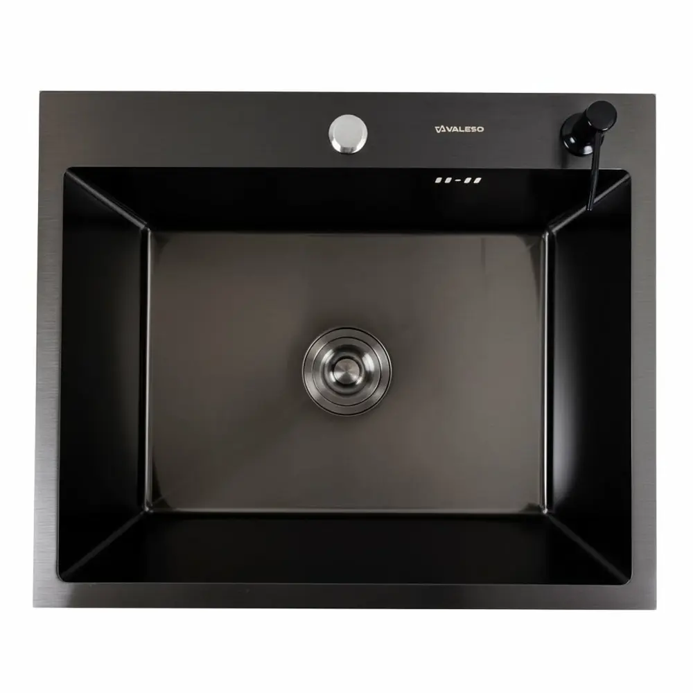 Кухонная мойка 60*50 PVD черная VALESO Handmade (сифон круглый, 3,0/0,8) – это отличное стильное решение для кухни небольших и средних размеров. Лаконичный дизайн квадратной формы хорошо подходит разным интерьерам кухни.